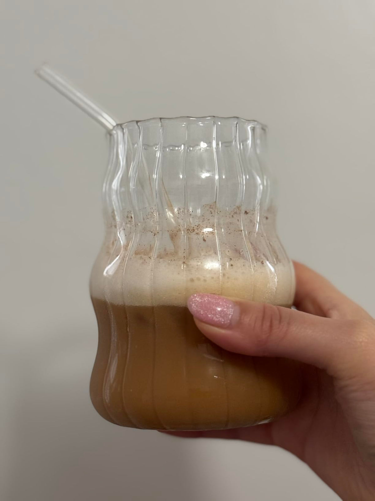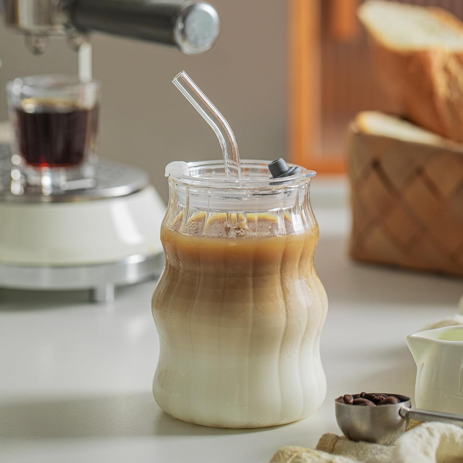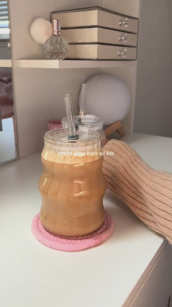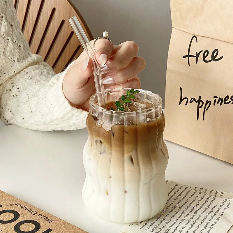 The tumblers feature a ribbed glass design that offers a soft, chic aesthetic. Whether in your kitchen or on your desk, their stylish look enhances any setting, making your drink presentation even more delightful.